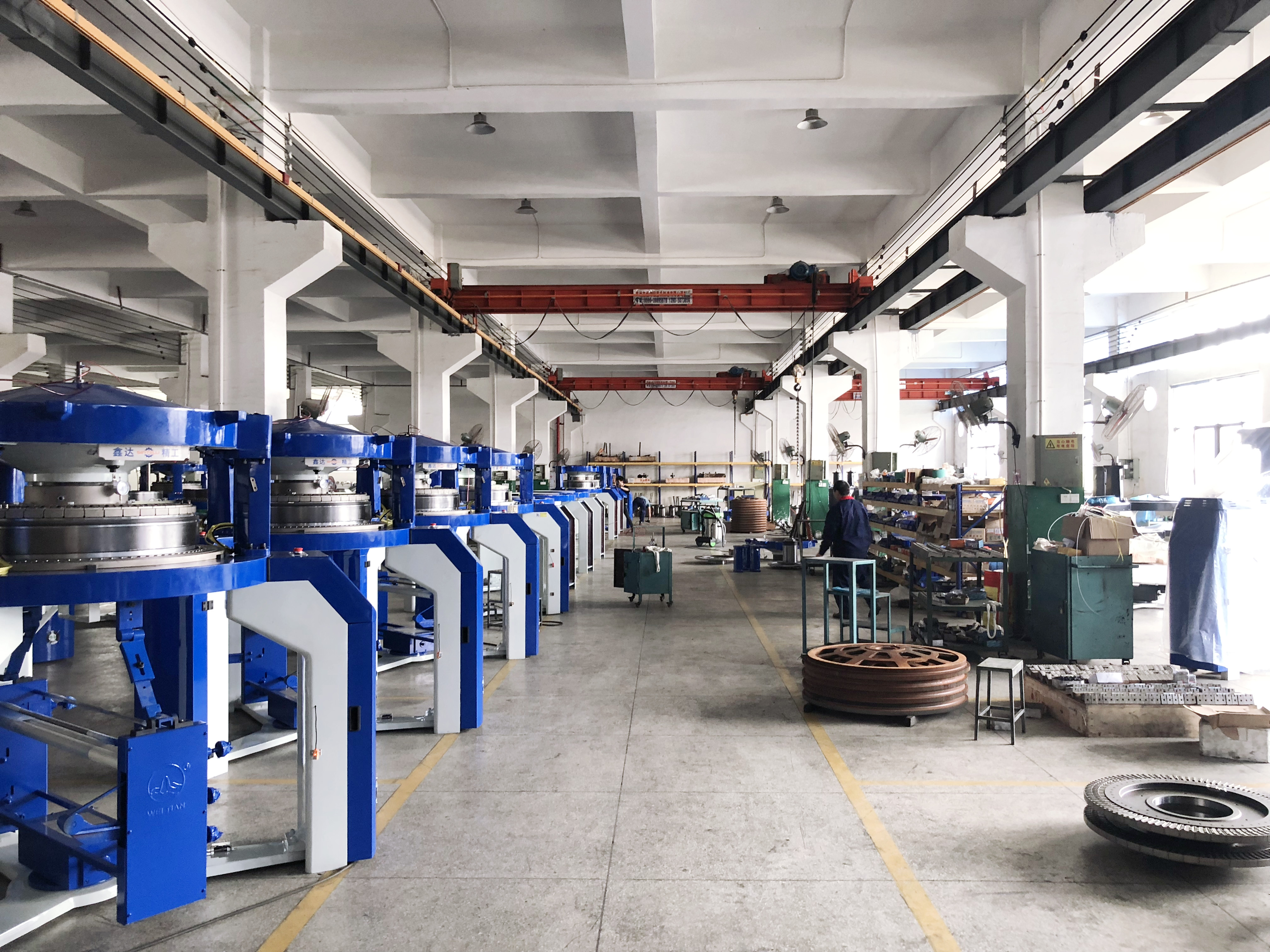 晋江市鑫达精工机械有限公司位于中国侨乡福建省泉州市晋江五里科技工业园,注册资金5000万元,占地60多亩,是福建省较早从事针织圆纬机设计制造的主要企业之一,公司已通过ISO9001国际质量管理体系认证和CE认证,获得高新技术企业称号并拥有多项专利技术。产品主要有:单面针织机系列,双面针织机系列,单面电脑提花机,双面电脑提花机,单面毛机提花机,双面花盘提花机,双面移圈罗纹机,单面4/6色自动调线机,自动开幅机,大卷装高脚机等系列产品。